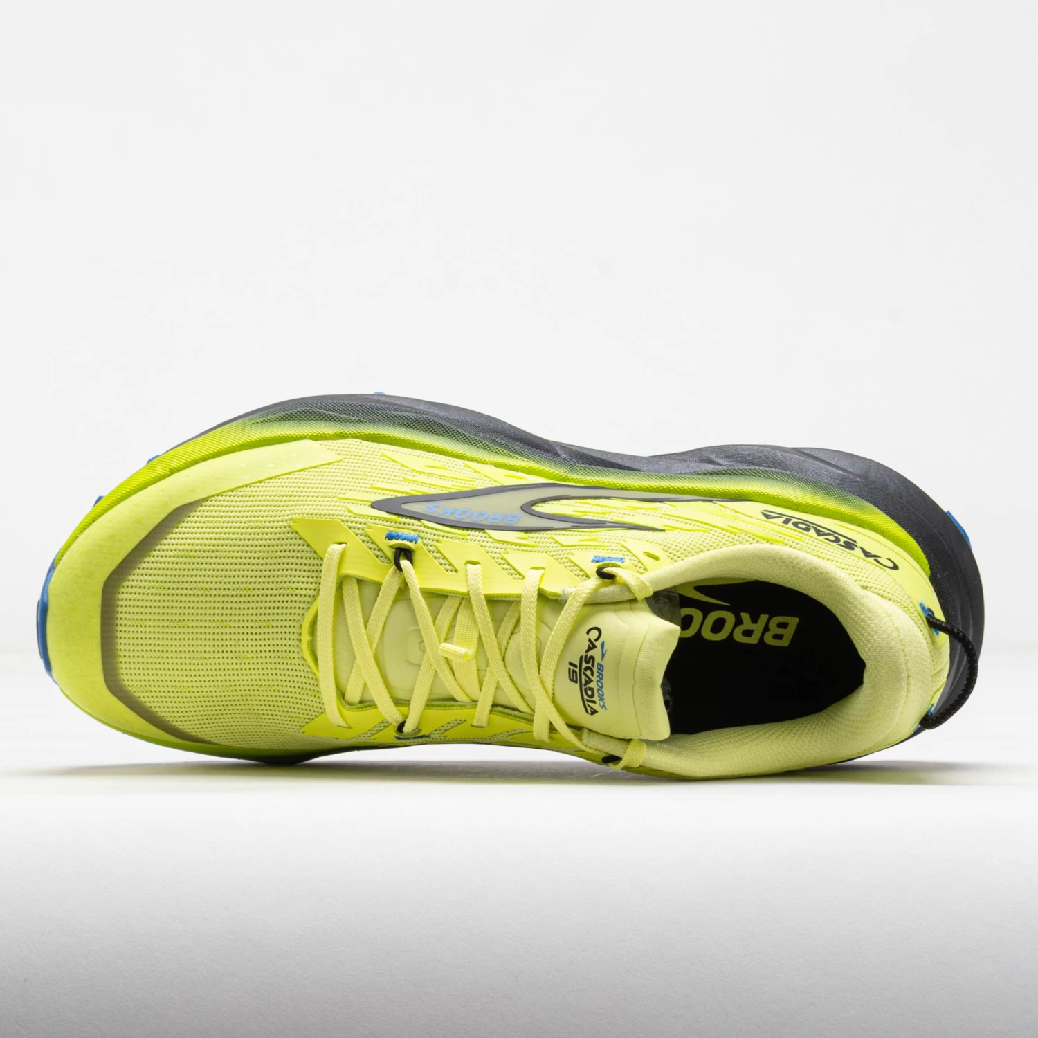 Take on any adventure in the Brooks Cascadia 19! Designed for mountainous trails, this off-road running shoe provides a stable ride over uneven terrain. Its Trail Adapt System combines an integrated midsole and a flexible rock plate for support on any surface. Dominate wet and dry terrain with the sticky TrailTack green rubber outsole. Enjoy softer strides under the DNA LOFT v3 foam midsole.When the trail gets tough, hold your ground in the Brooks Cascadia 19!