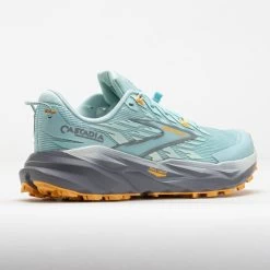 Take on any adventure in the Brooks Cascadia 19! Designed for mountainous trails, this off-road running shoe provides a stable ride over uneven terrain. Its Trail Adapt System combines an integrated midsole and a flexible rock plate for support on any surface. Dominate wet and dry terrain with the sticky TrailTack green rubber outsole. Enjoy softer strides under the DNA LOFT v3 foam midsole.When the trail gets tough, hold your ground in the Brooks Cascadia 19!
