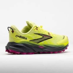 Take on any adventure in the Brooks Cascadia 19! Designed for mountainous trails, this off-road running shoe provides a stable ride over uneven terrain. Its Trail Adapt System combines an integrated midsole and a flexible rock plate for support on any surface. Dominate wet and dry terrain with the sticky TrailTack green rubber outsole. Enjoy softer strides under the DNA LOFT v3 foam midsole.When the trail gets tough, hold your ground in the Brooks Cascadia 19!
