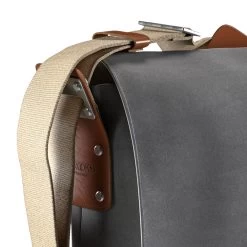 The Barbican’s “basic frame” consists of a water-resistant cotton material, shoulder strap and buckles made of premium leather. If the bag were made entirely of leather, the Barbican would no longer meet the characteristics of a sporty and comfortable shoulder bag and would be significantly too heavy. Once properly adjusted to the rider, the Barbican can be worn loosely over the shoulder.