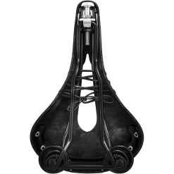 The is a touring saddle with spring suspension and a cutout for pressure relief, perfect for adventure cycling, commuting and long distance touring. The Flyer has the same leather top as the B17 model, combining the comfort of leather and added suspension with increased flexibility. One of our most popular models, the Flyer is handcrafted in our Smethwick, England factory and features tubular steel rivets and a black powder-coated chassis.
