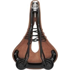 The is a touring saddle with spring suspension and a cutout for pressure relief, perfect for adventure cycling, commuting and long distance touring. The Flyer has the same leather upper as the B17 model, combining the comfort of leather and added suspension with increased flexibility. The Flyer, one of Brooks’ most popular models, is handcrafted at the company’s in-house factory in Smethwick, England, and features tubular steel rivets and a black, powder-coated chassis.