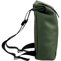 The is a roll-top backpack whose minimalist design complements any urban trip by bike. Made from water repellent treated cotton with Brooks vegetable tanned leather details.