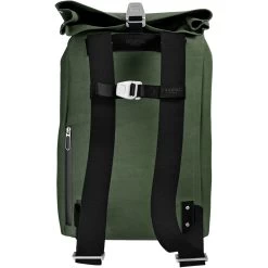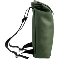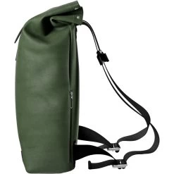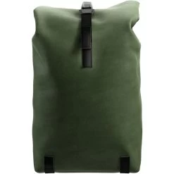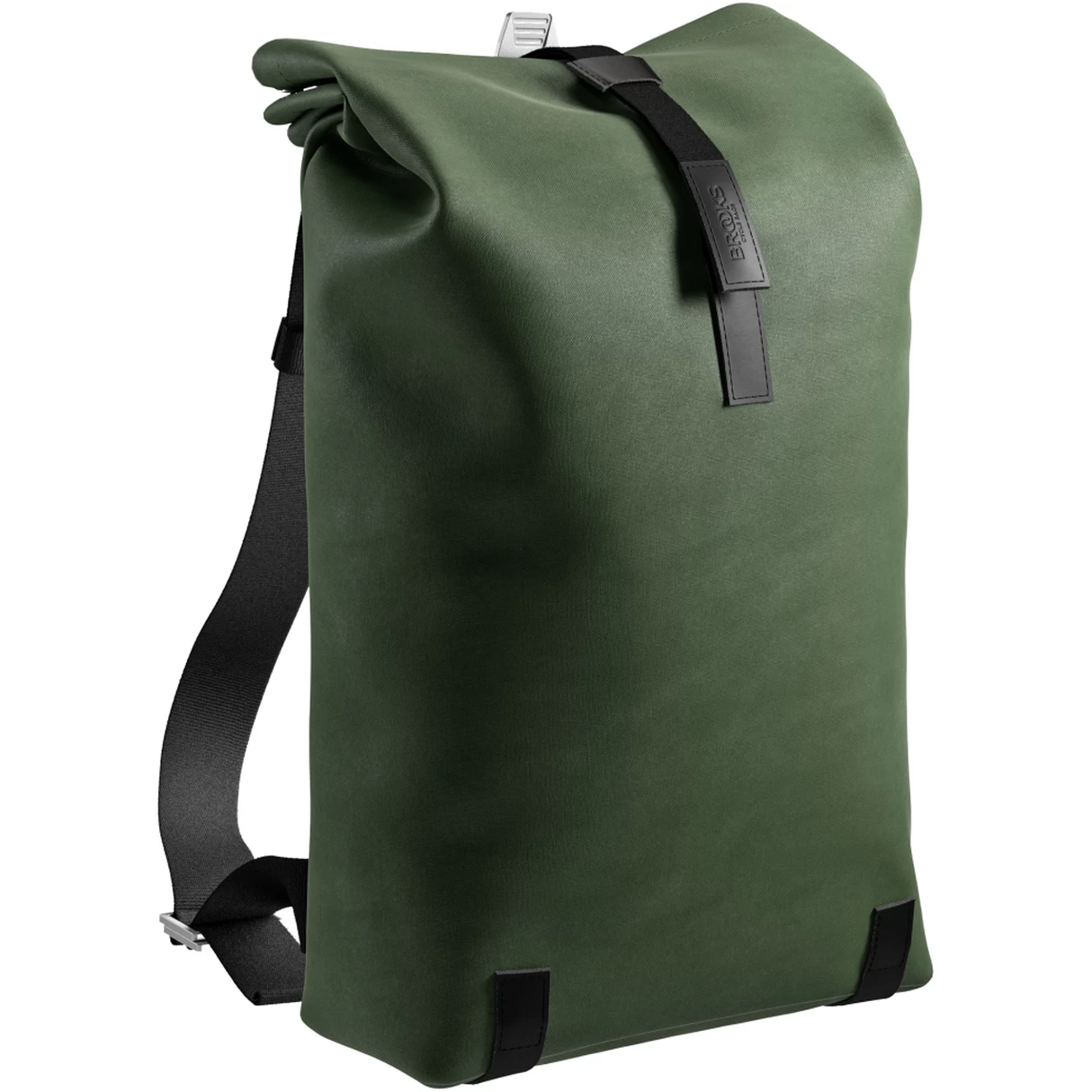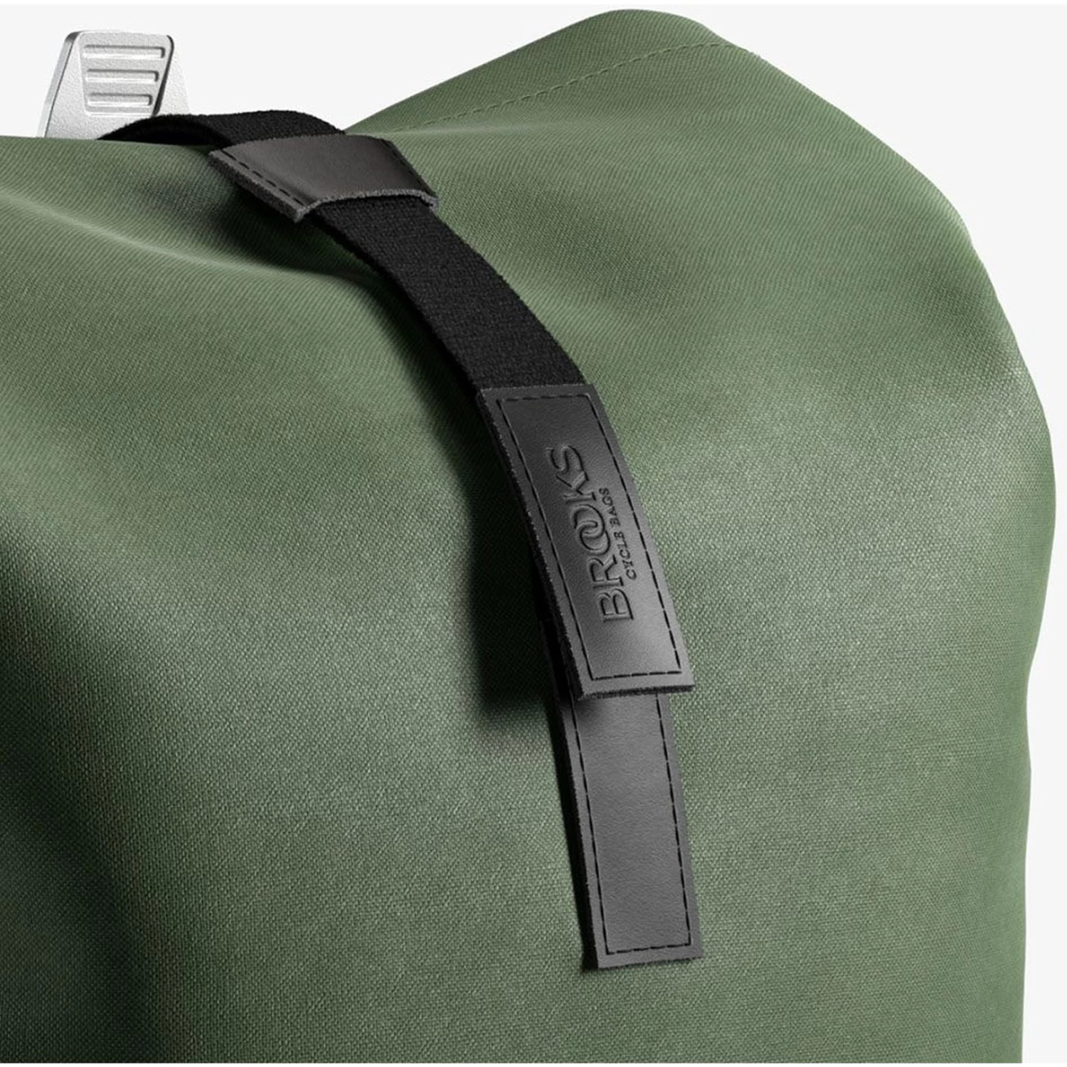 The is a roll-top backpack whose minimalist design complements any urban trip by bike. Made from water repellent treated cotton with Brooks vegetable tanned leather details.