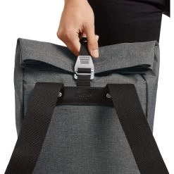 Stylish and versatile, this roll-top bag is flexible in its capacity.
