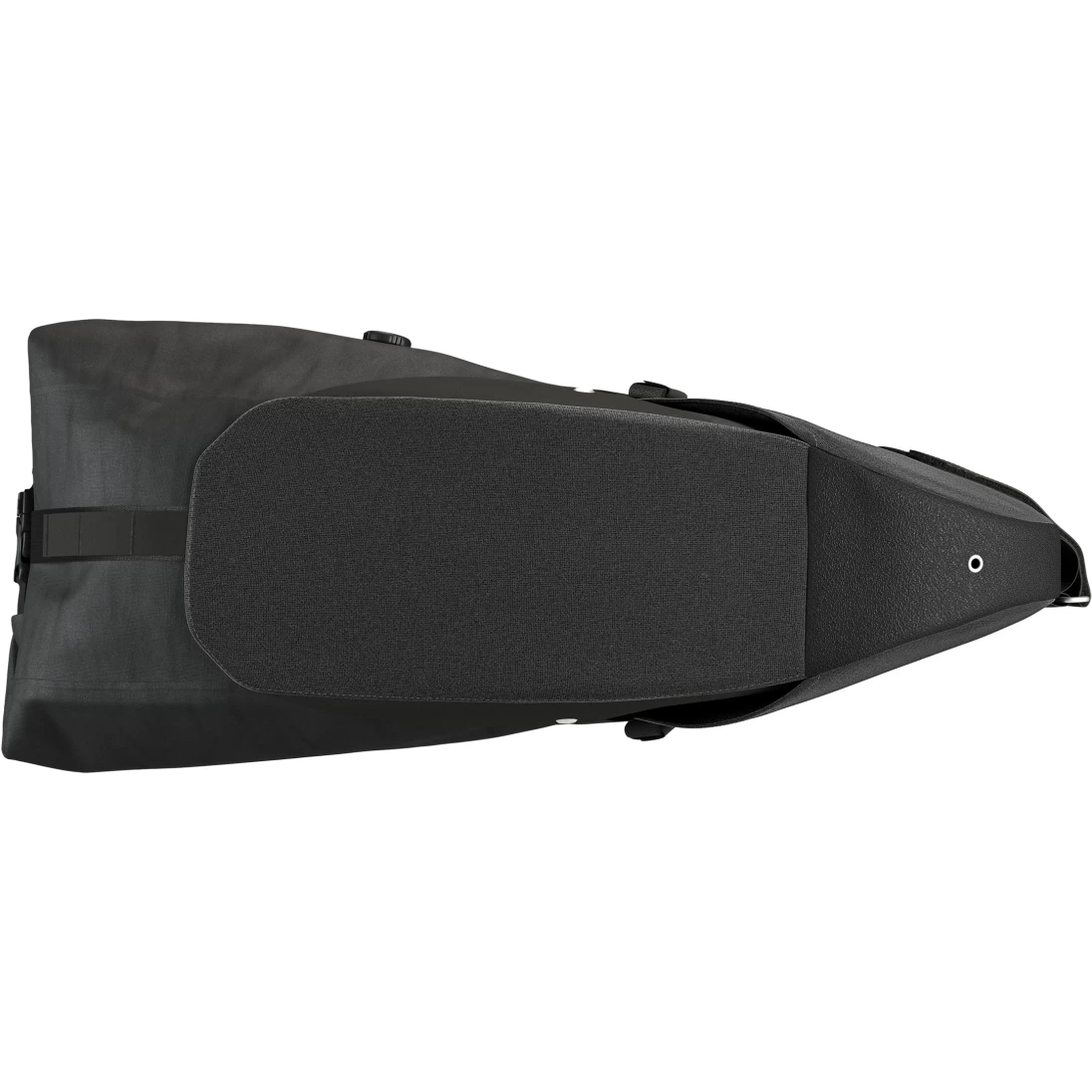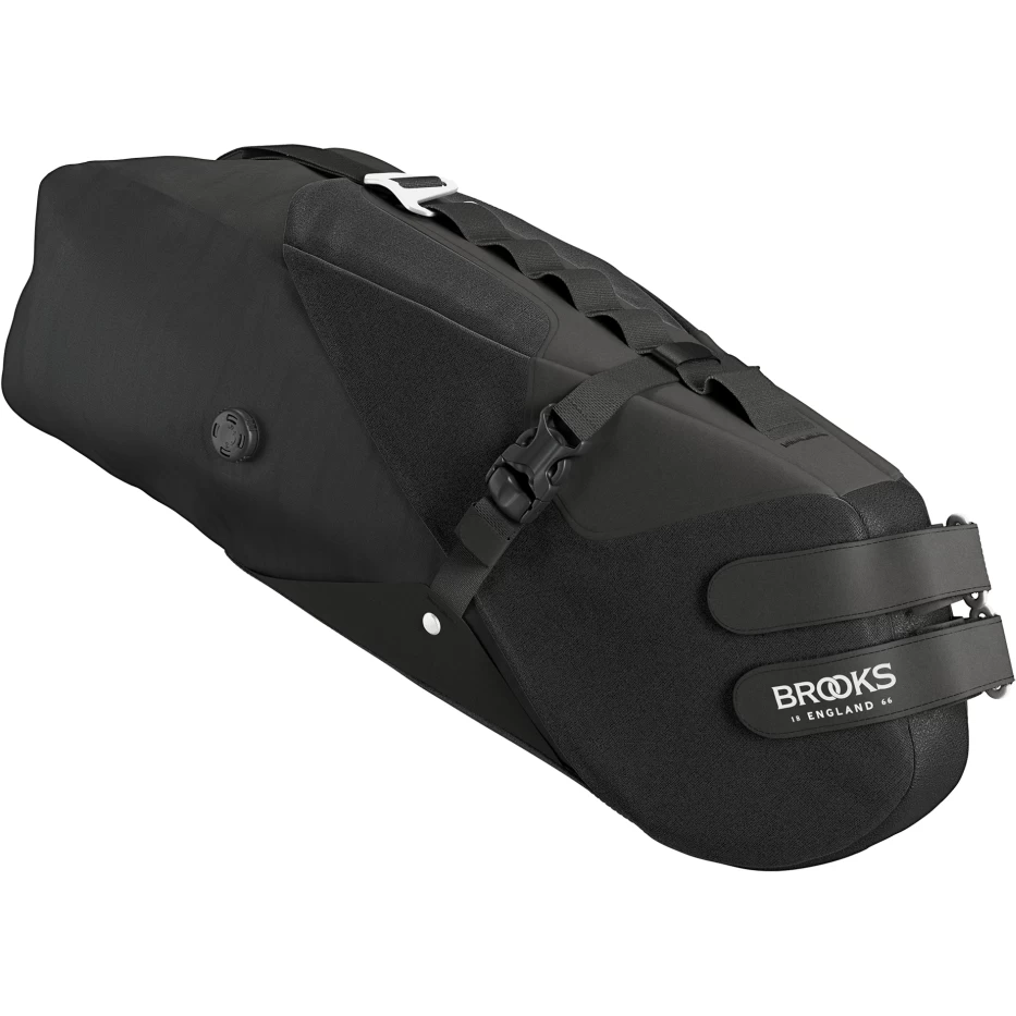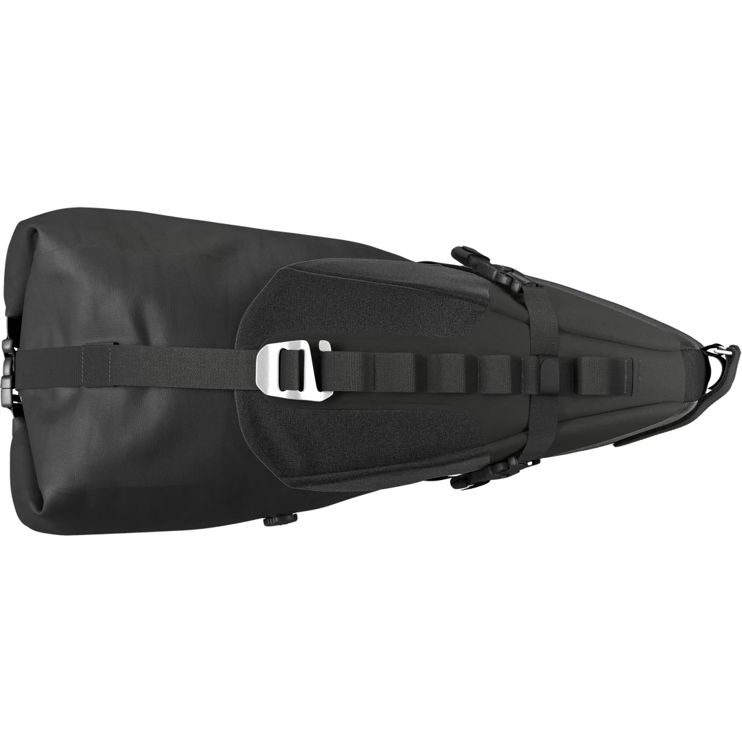 Made for gravel and adventure cycling, the Scape Seat Bag is a bikepacking bag made from two separate components: a holster and a 100% waterproof (IPX4 certified) removable drybag. The holster is built from rugged materials to last, the holster bottom designed to act as a mudguard and protect the internal bag from any rear wheel contact. The dry bag easily compresses thanks to its air valve release mechanism to minimise bulk, and can be rolled smaller when less carrying space is needed. The daisy chain allows attachment of modular bags, and a loop is included to attach a rear light. Made from waterproof material to be prepared for any ride, regardless of conditions.