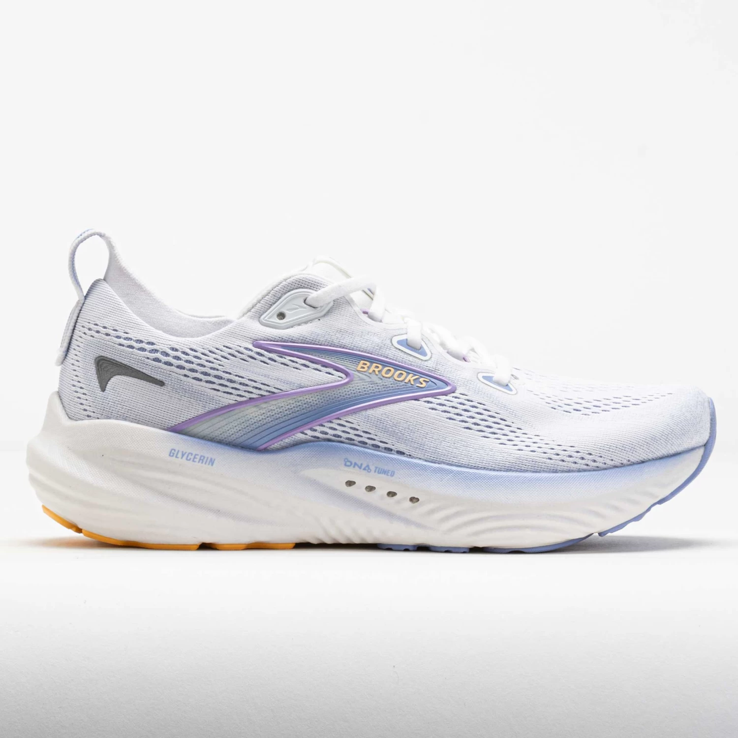 Feel like you can run forever in the Brooks Glycerin 22! This neutral running shoe provides soft and responsive cushioning with every stride. Find a comfortable and accommodating fit in the double jacquard knit upper. The dual-cell DNA Tuned midsole offers soft landings and responsive lift-offs. Enjoy smooth transitions as the wide platform stabilizes your stride. If you want to get lost in a land of softness during your daily runs, try the Brooks Glycerin 22!